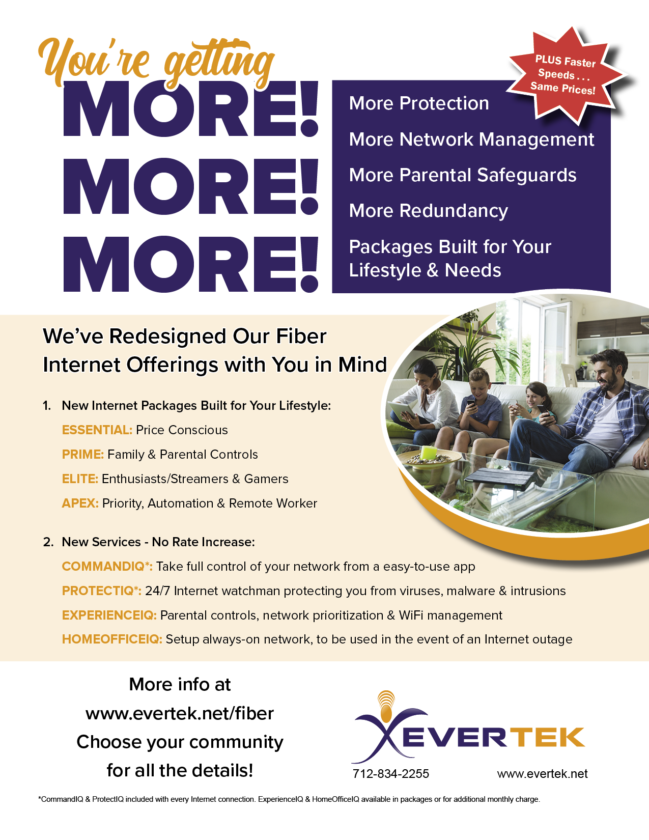 *CommandIQ & ProtectIQ included with every Internet connection. ExperienceIQ & HomeOfficeIQ available in packages or for additional monthly charge.